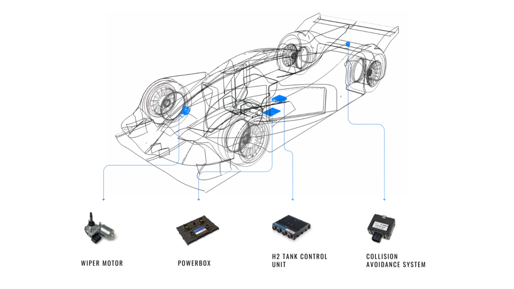 For MissionH24, Bosch Motorsport will supply additional components, designed thanks to the extensive experience in motorsport. The PowerBox PBX 190, a fully programable, intelligent control and distribution unit for the onboard electric grid, simplifies and optimizes the electronic architecture of a race car. The collision avoidance system CAS-M light, a radar-based technology, enhances track safety by warning the driver of approaching vehicles, delivering the same performance regardless the weather conditions. The newly developed wiper motor WDD2-EU, with direct rotation movement replacing any external gears, allows programming of operating speeds and wiping angles in all its function modes.